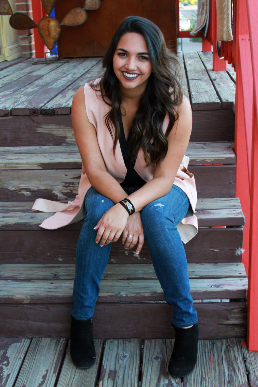 This is one of my go-to outfits right now. As I’ve mentioned in the past, Tucson doesn’t get very cold in the winter. It does, however, get cold enough that I don’t want to be walking around in a thin blouse with nothing else to keep me warm. That’s where this super cool vest comes in. It’s the perfect way to dress up an otherwise plain outfit and somewhat keep my middle warm during the 10 minute walk to my office. Plus, this classic outfit looks perfect with this beautiful wrap bracelet from That’s So Fletch.