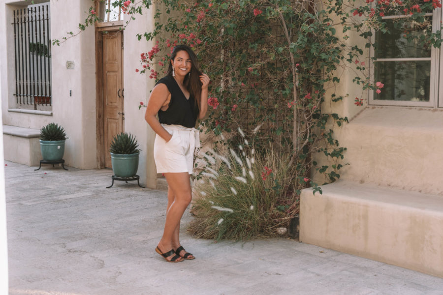 I’m usually always wearing athletic shorts or jean shorts, but I might have to add a cute pair of tie waist shorts to my shopping cart! I love how you styled them. So cute and effortlessy chic!