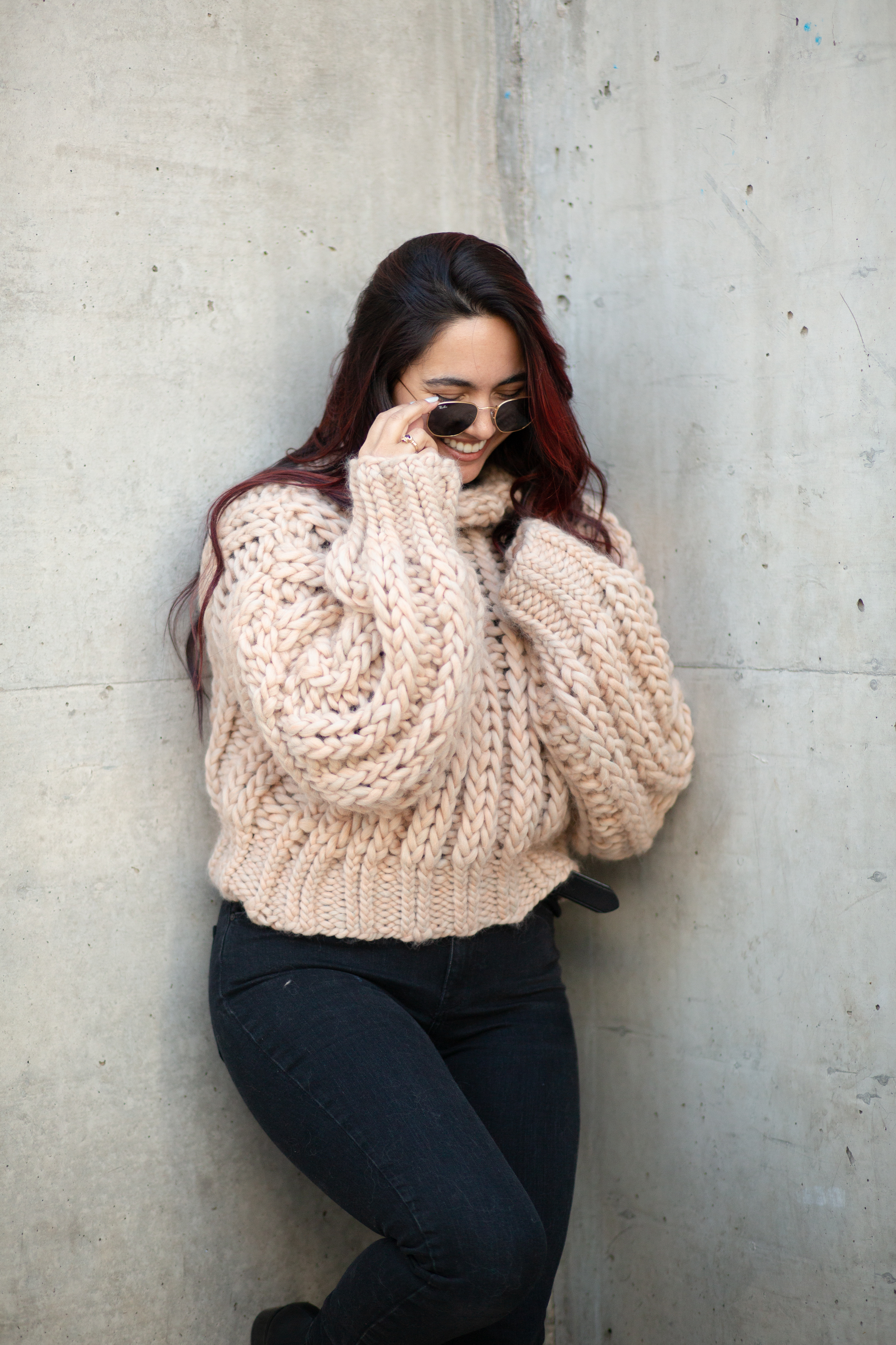 As a beginner, this sweater was easy enough to construct. This sweater comes in one size: oversized. I am not a small person, and the sweater fit well enough on my body frame. That being said, the yarn is a bit of an expensive choice for a sweater that (in my opinion) lacks wearability.